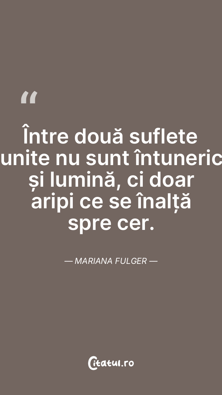 Între două suflete unite nu sunt întuneric și lumină, ci doar aripi ce se înalță spre cer. Mariana Fulger