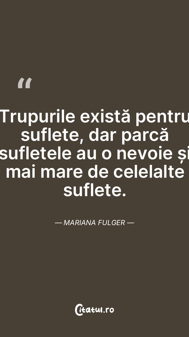 Trupurile există pentru suflete, dar parcă sufletele au o nevoie și mai mare de celelalte suflete. Mariana Fulger