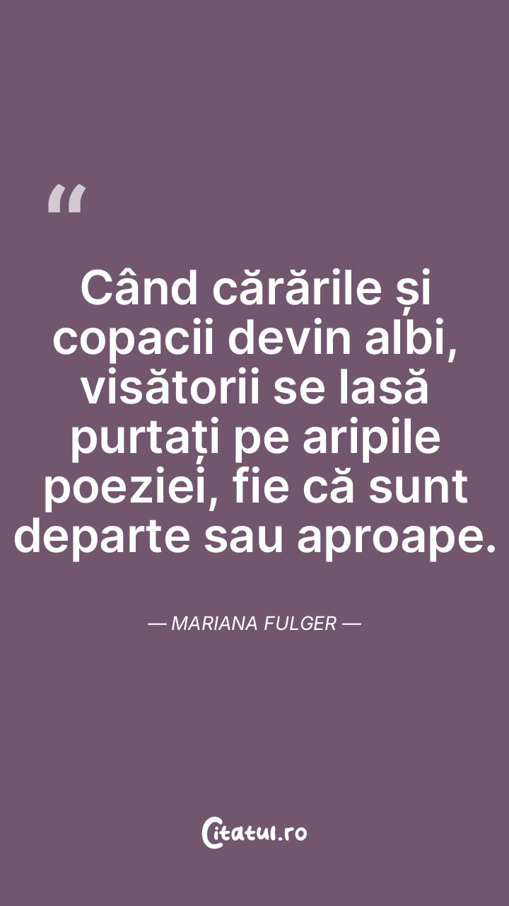 Când cărările și copacii devin albi, visătorii se lasă purtați pe aripile poeziei, fie că sunt departe sau aproape. Mariana Fulger