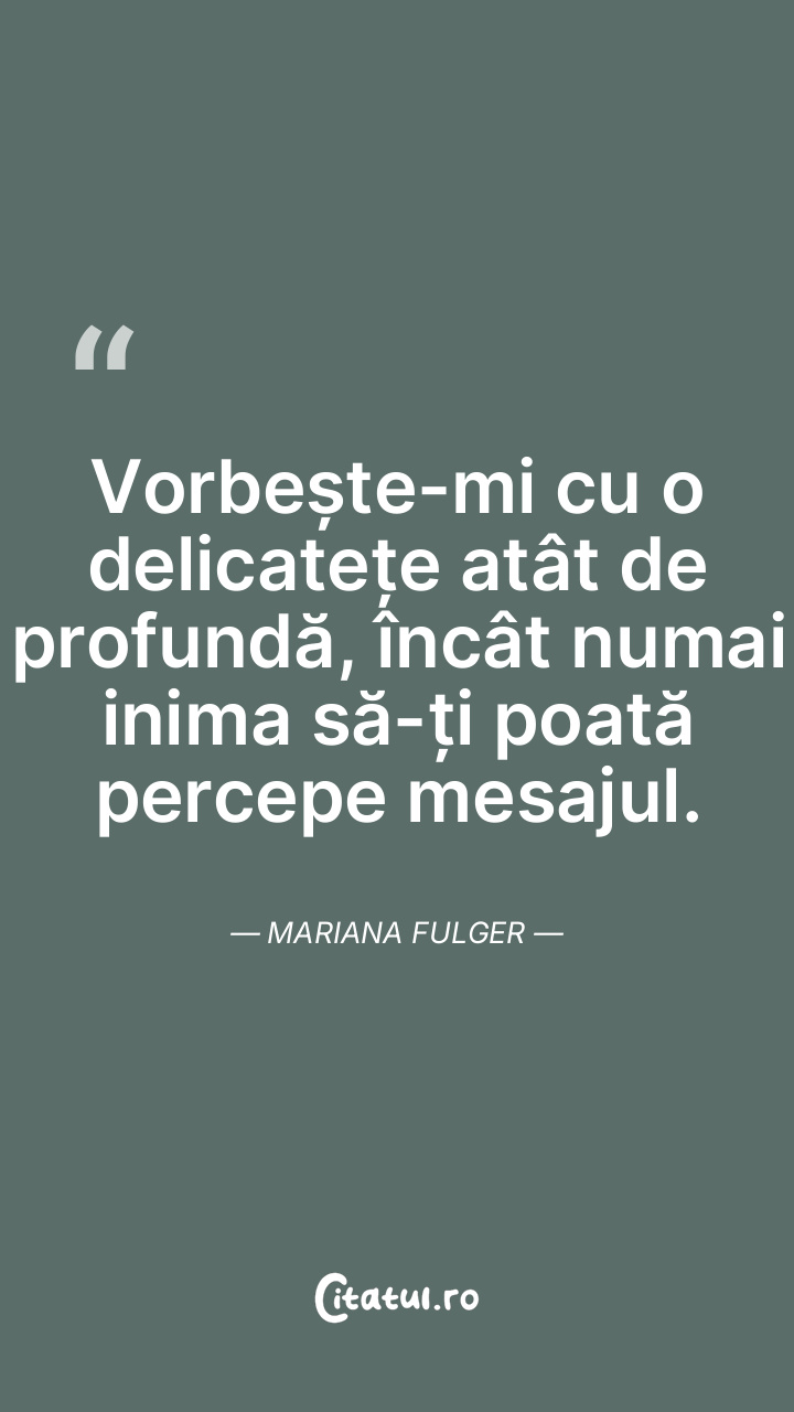 Vorbește-mi cu o delicatețe atât de profundă, încât numai inima să-ți poată percepe mesajul. Mariana Fulger