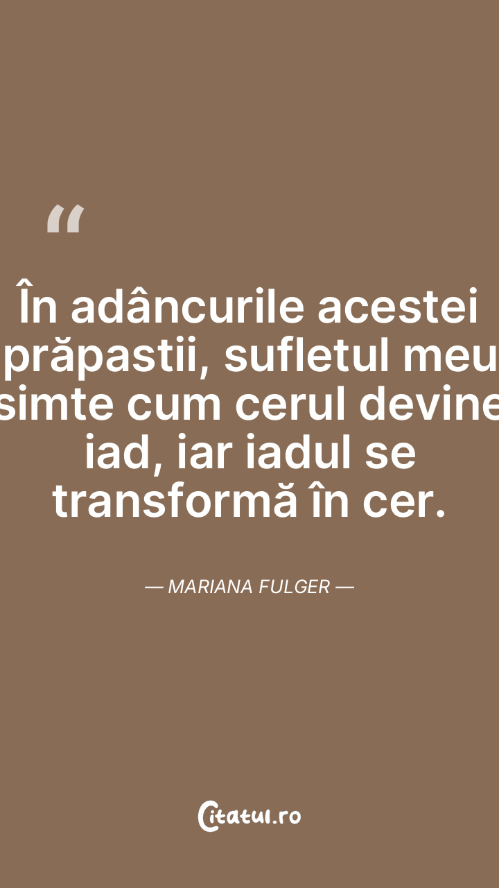 În adâncurile acestei prăpastii, sufletul meu simte cum cerul devine iad, iar iadul se transformă în cer. Mariana Fulger
