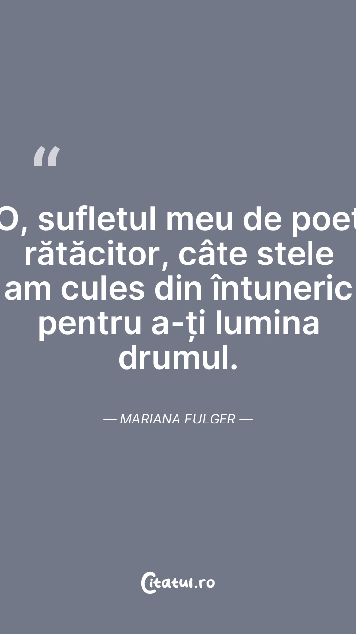 O, sufletul meu de poet rătăcitor, câte stele am cules din întuneric pentru a-ți lumina drumul. Mariana Fulger