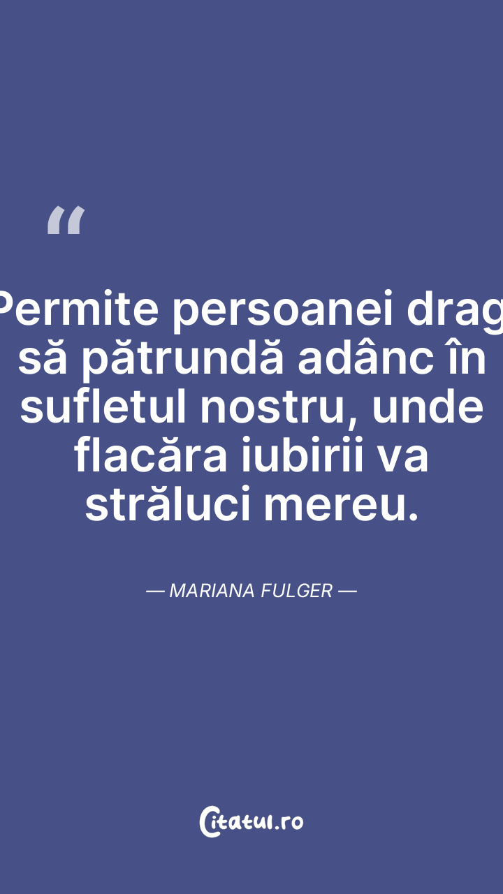 Permite persoanei dragi să pătrundă adânc în sufletul nostru, unde flacăra iubirii va străluci mereu. Mariana Fulger