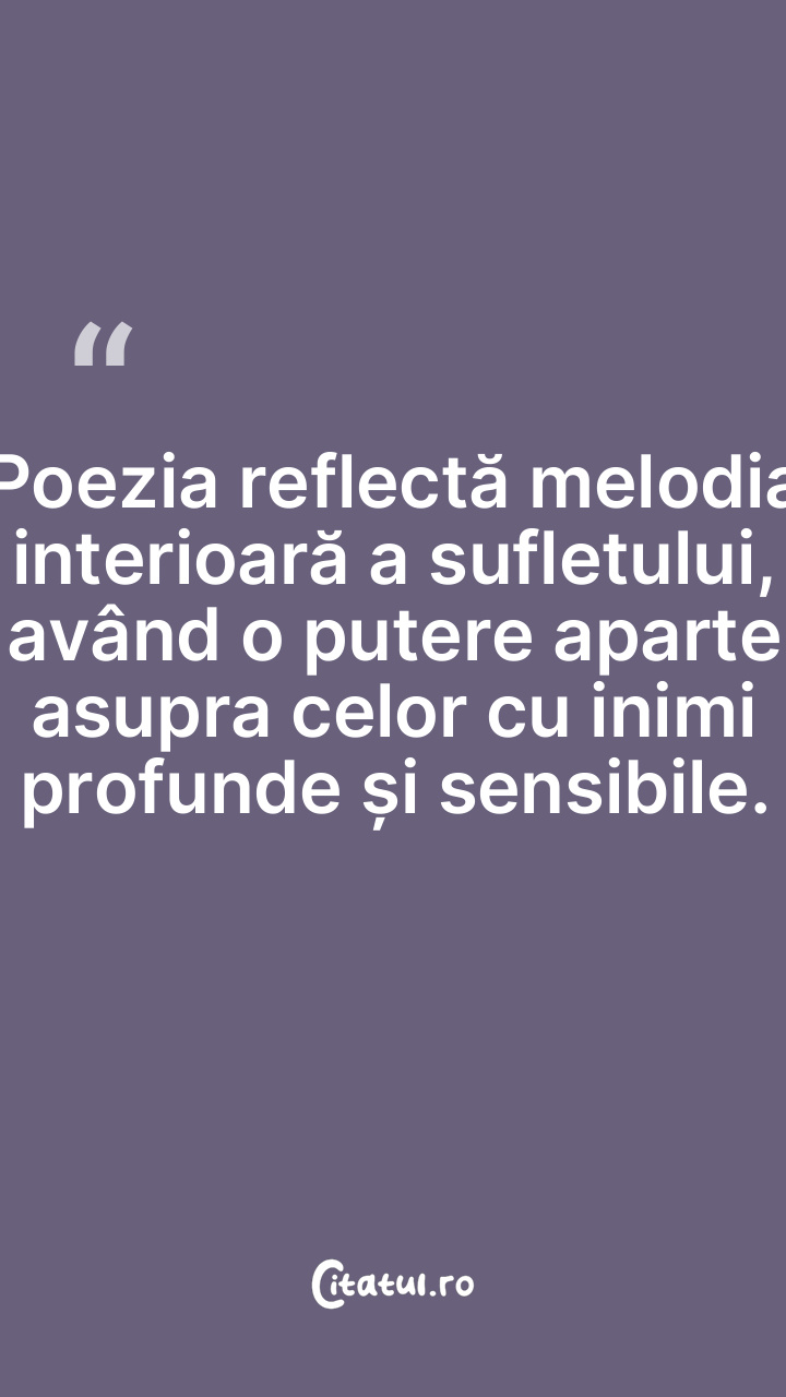 Poezia reflectă melodia interioară a sufletului, având o putere aparte asupra celor cu inimi profunde și sensibile.