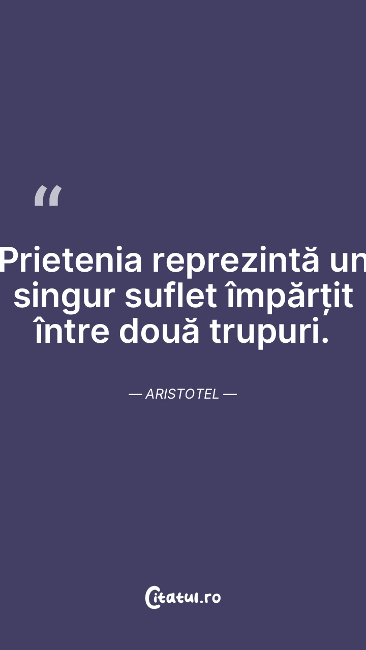 Prietenia reprezintă un singur suflet împărțit între două trupuri. Aristotel