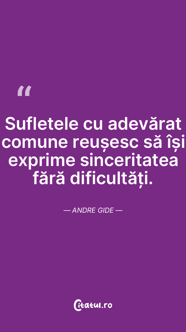 Sufletele cu adevărat comune reușesc să își exprime sinceritatea fără dificultăți. Andre Gide