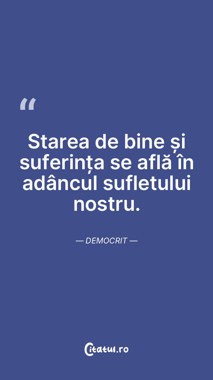 Starea de bine și suferința se află în adâncul sufletului nostru. Democrit