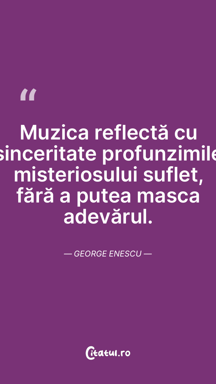 Muzica reflectă cu sinceritate profunzimile misteriosului suflet, fără a putea masca adevărul. George Enescu