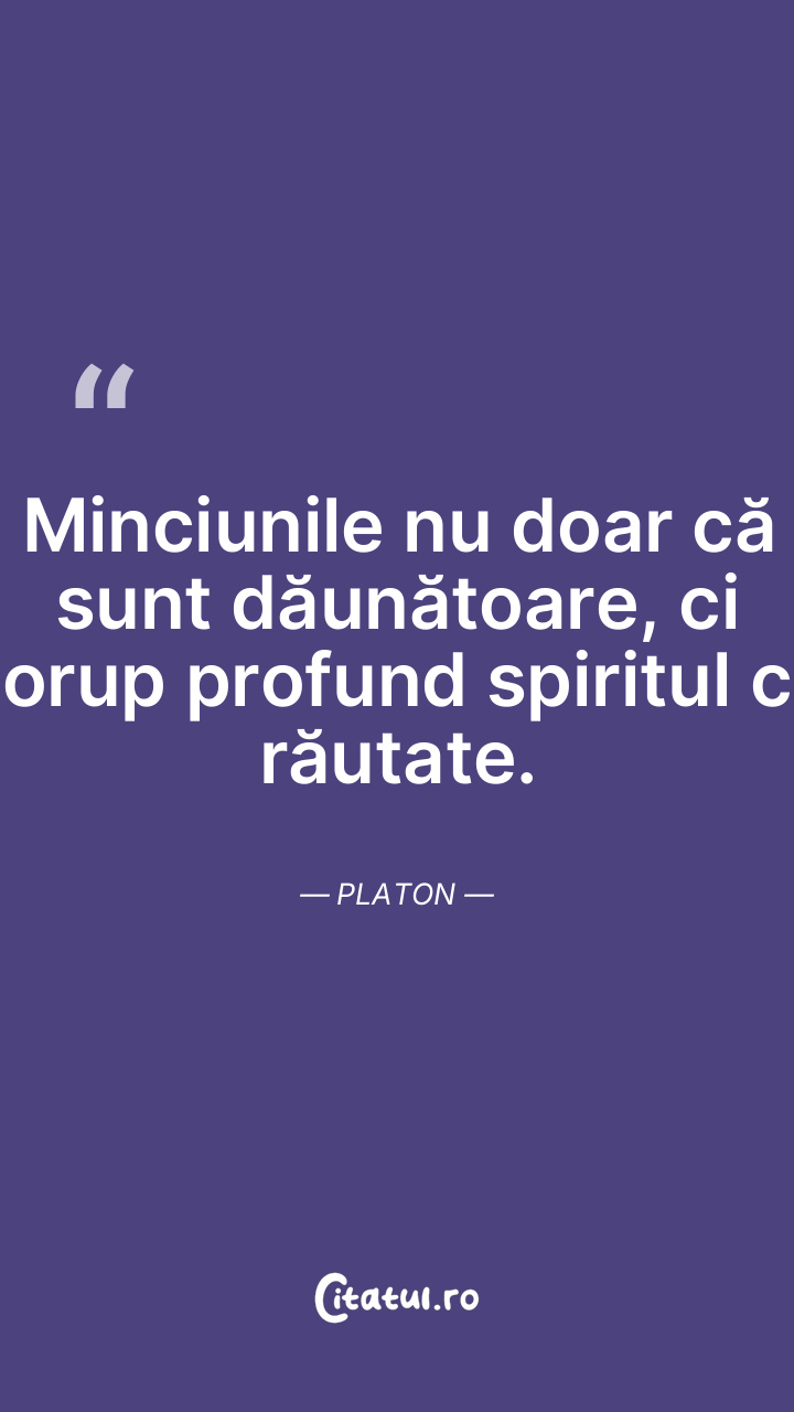 Minciunile nu doar că sunt dăunătoare, ci corup profund spiritul cu răutate. Platon