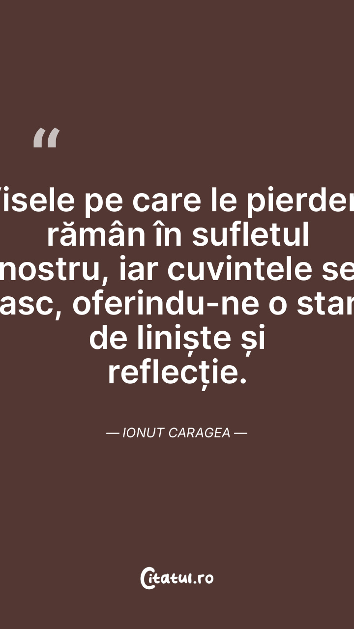 Visele pe care le pierdem rămân în sufletul nostru, iar cuvintele se nasc, oferindu-ne o stare de liniște și reflecție. Ionut Caragea