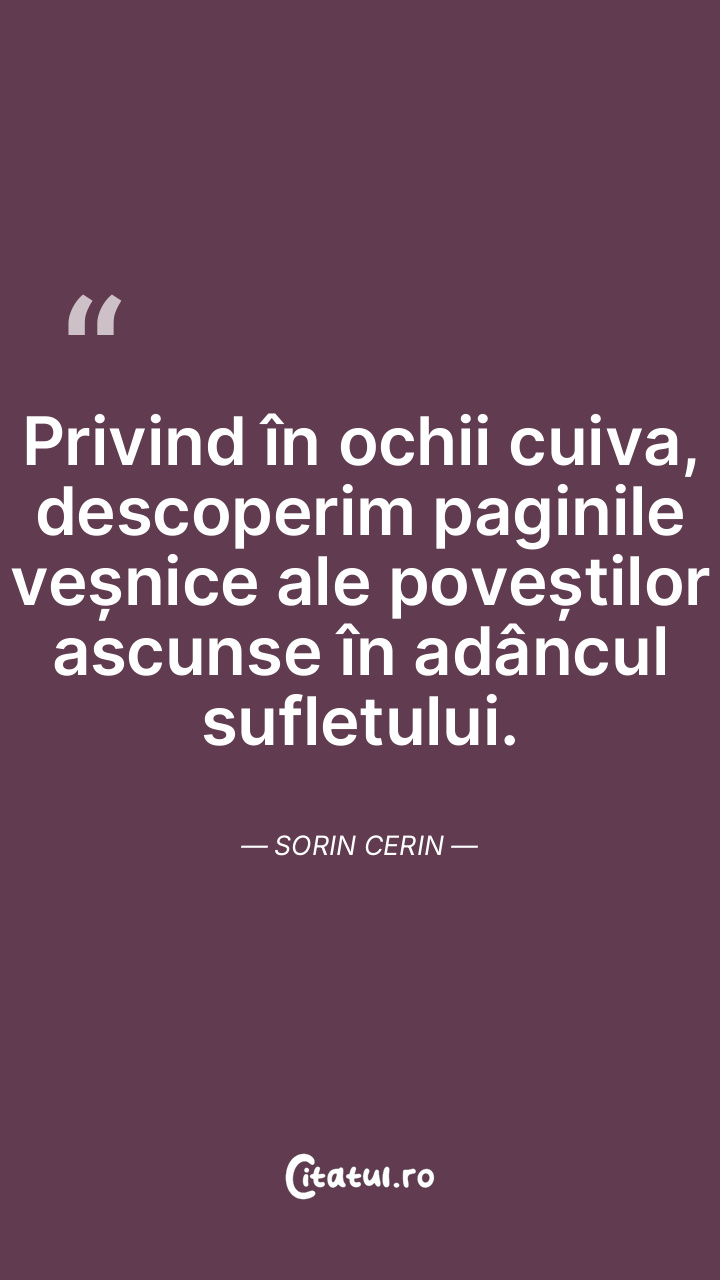 Privind în ochii cuiva, descoperim paginile veșnice ale poveștilor ascunse în adâncul sufletului. Sorin Cerin
