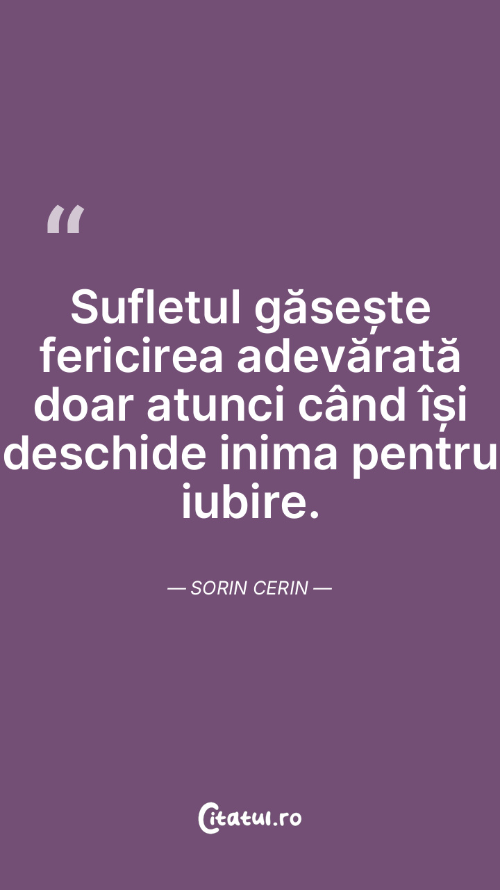 Sufletul găsește fericirea adevărată doar atunci când își deschide inima pentru iubire. Sorin Cerin