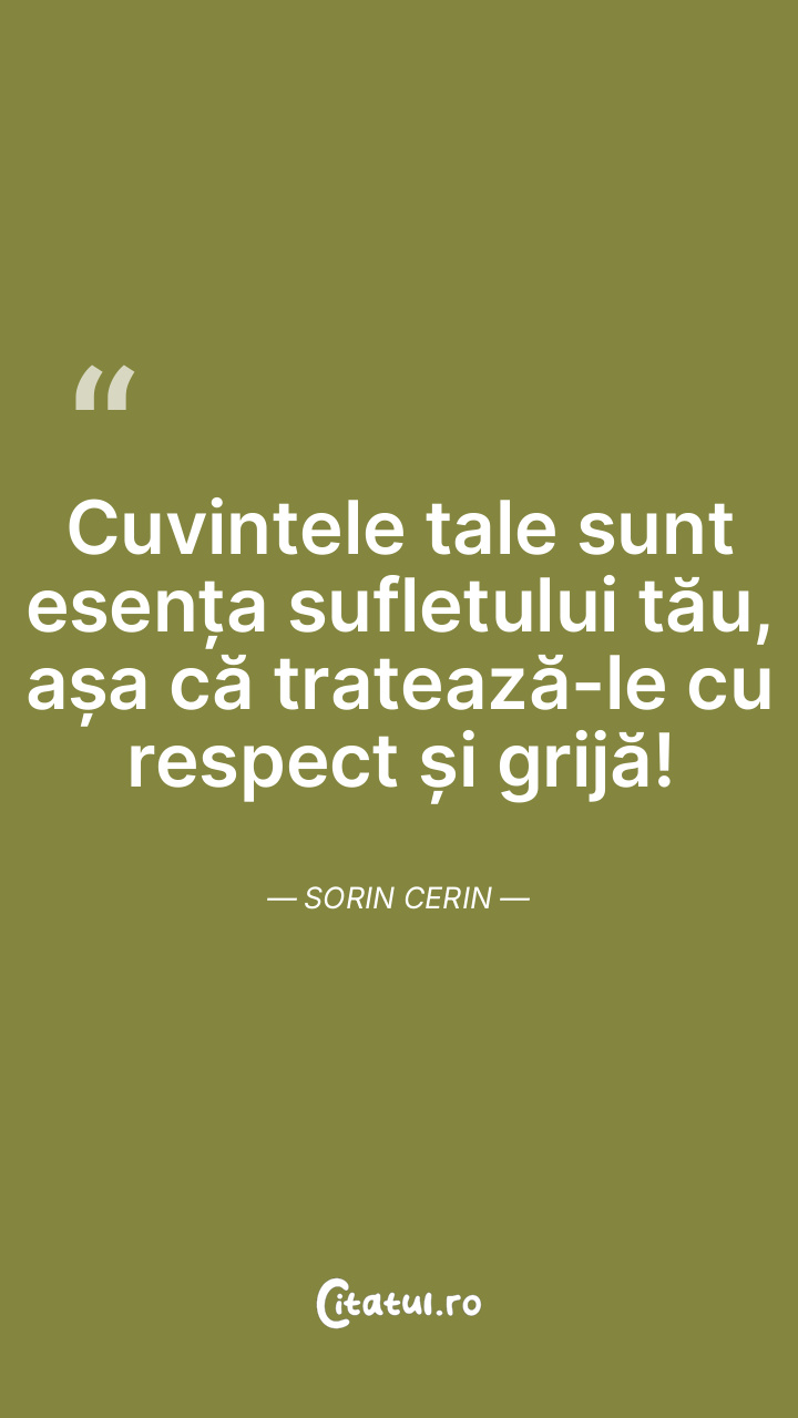 Cuvintele tale sunt esența sufletului tău, așa că tratează-le cu respect și grijă! Sorin Cerin