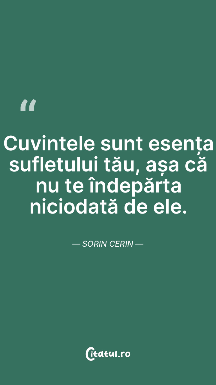 Cuvintele sunt esența sufletului tău, așa că nu te îndepărta niciodată de ele. Sorin Cerin