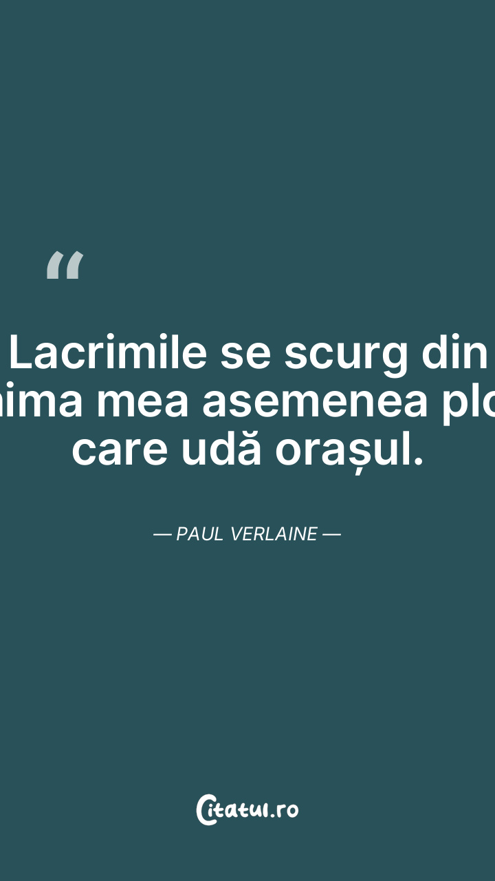 Lacrimile se scurg din inima mea asemenea ploii care udă orașul. Paul Verlaine