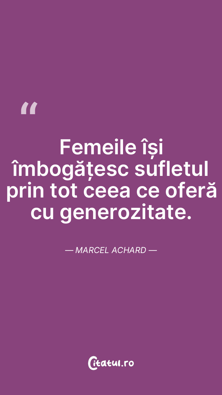 Femeile își îmbogățesc sufletul prin tot ceea ce oferă cu generozitate. Marcel Achard