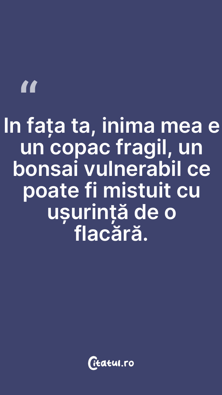 In fața ta, inima mea e un copac fragil, un bonsai vulnerabil ce poate fi mistuit cu ușurință de o flacără.