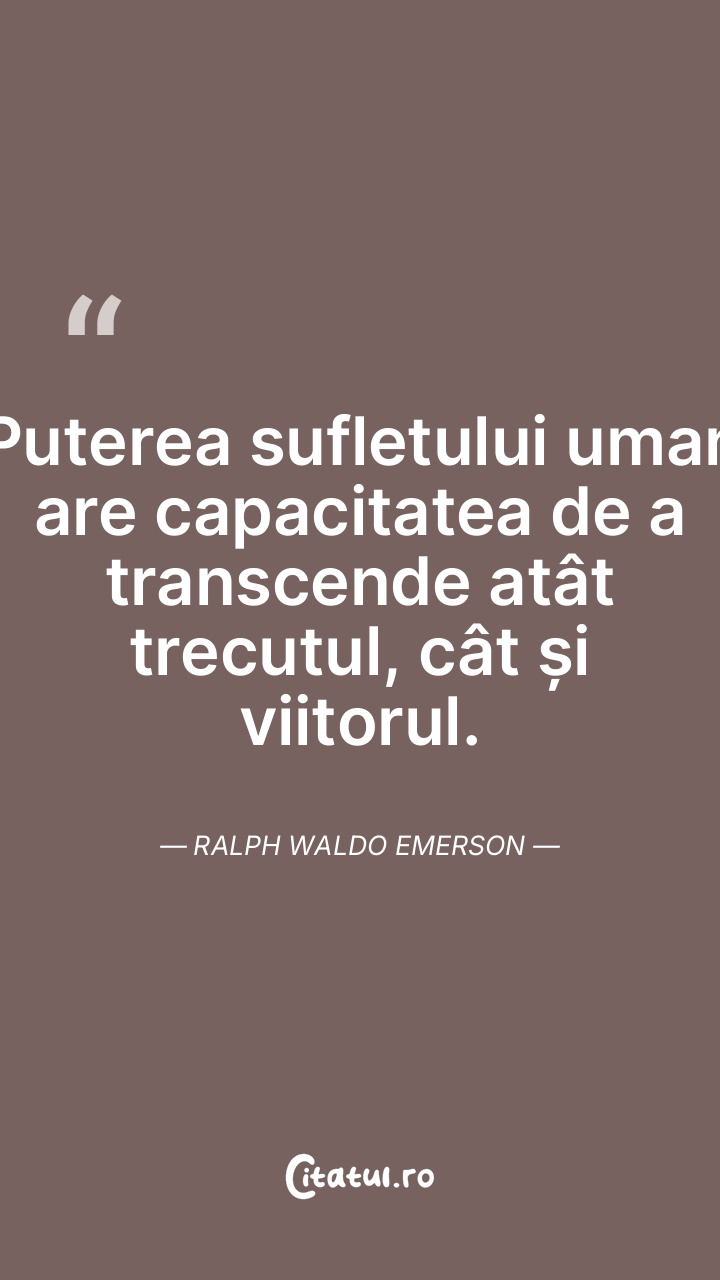 Puterea sufletului uman are capacitatea de a transcende atât trecutul, cât și viitorul. Ralph Waldo Emerson