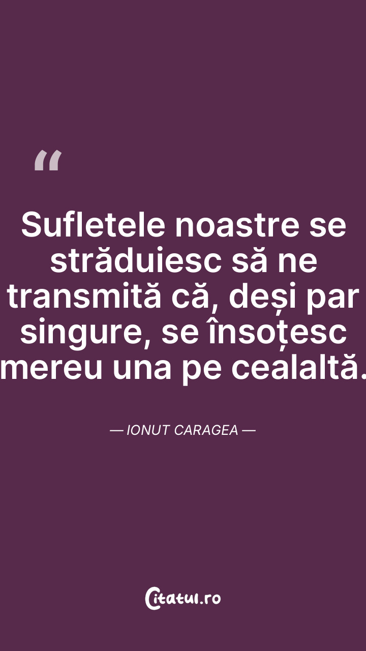 Sufletele noastre se străduiesc să ne transmită că, deși par singure, se însoțesc mereu una pe cealaltă. Ionut Caragea
