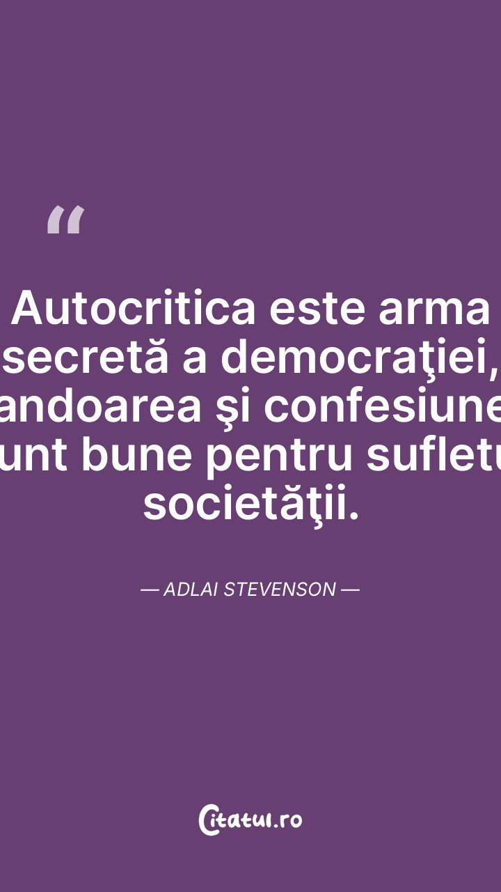 Autocritica este arma secretă a democraţiei, candoarea şi confesiunea sunt bune pentru sufletul societăţii. Adlai Stevenson