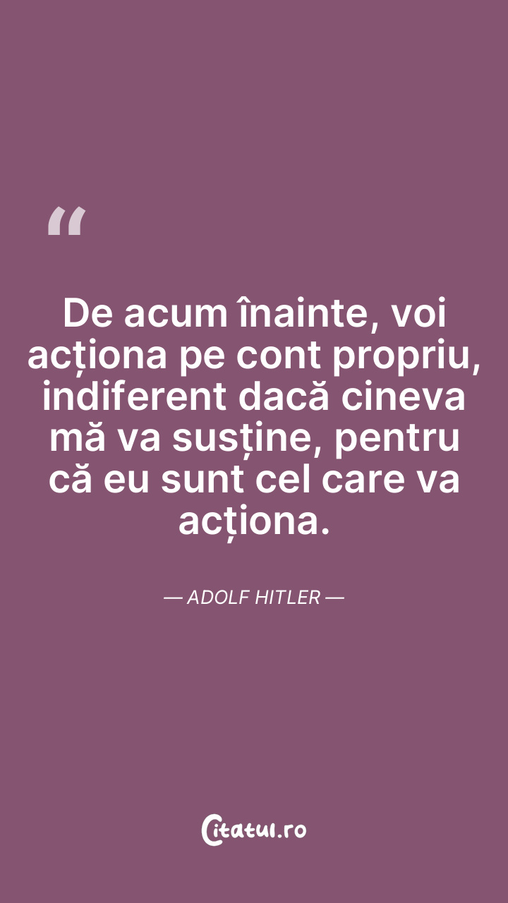 De acum înainte, voi acționa pe cont propriu, indiferent dacă cineva mă va susține, pentru că eu sunt cel care va acționa. Adolf Hitler