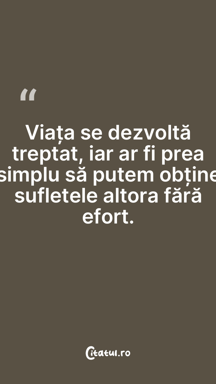 Viața se dezvoltă treptat, iar ar fi prea simplu să putem obține sufletele altora fără efort.