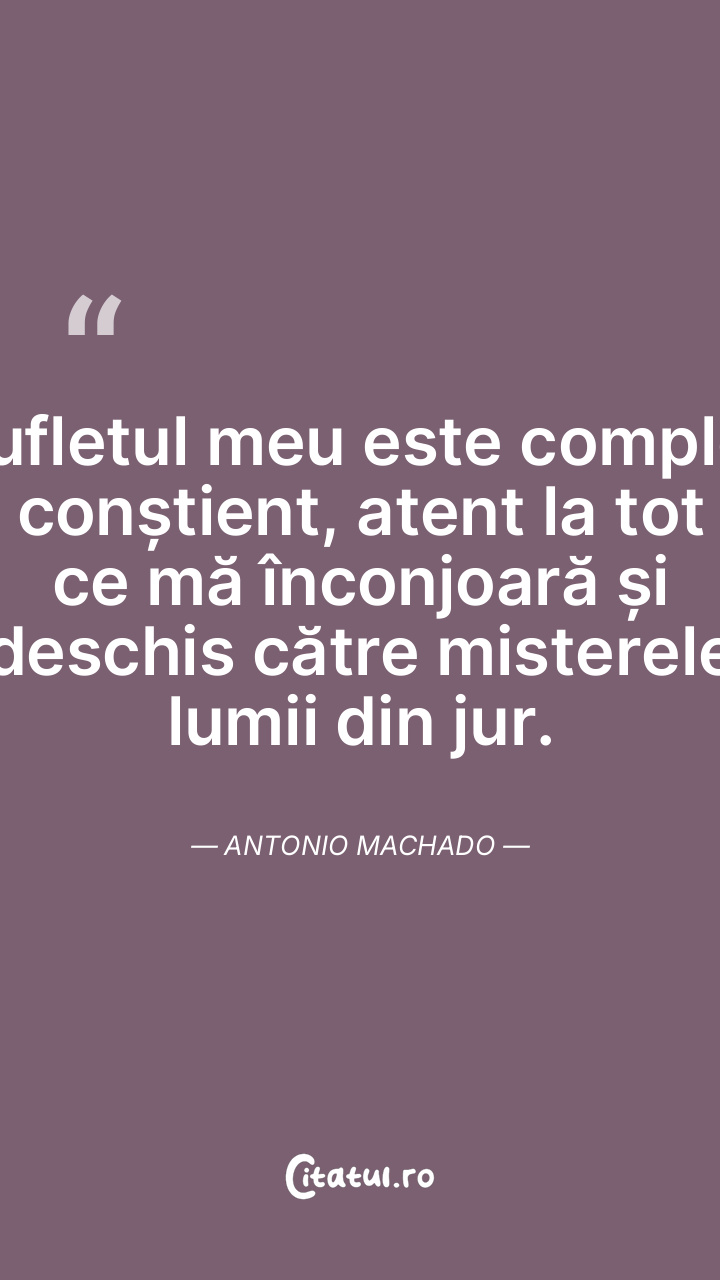 Sufletul meu este complet conștient, atent la tot ce mă înconjoară și deschis către misterele lumii din jur. Antonio Machado