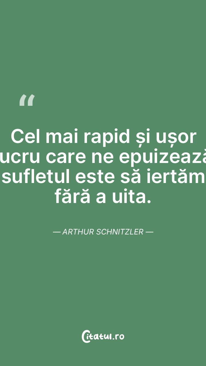 Cel mai rapid și ușor lucru care ne epuizează sufletul este să iertăm fără a uita. Arthur Schnitzler