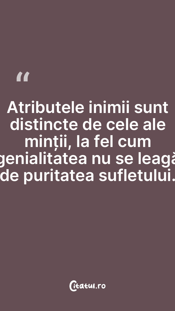 Atributele inimii sunt distincte de cele ale minții, la fel cum genialitatea nu se leagă de puritatea sufletului.