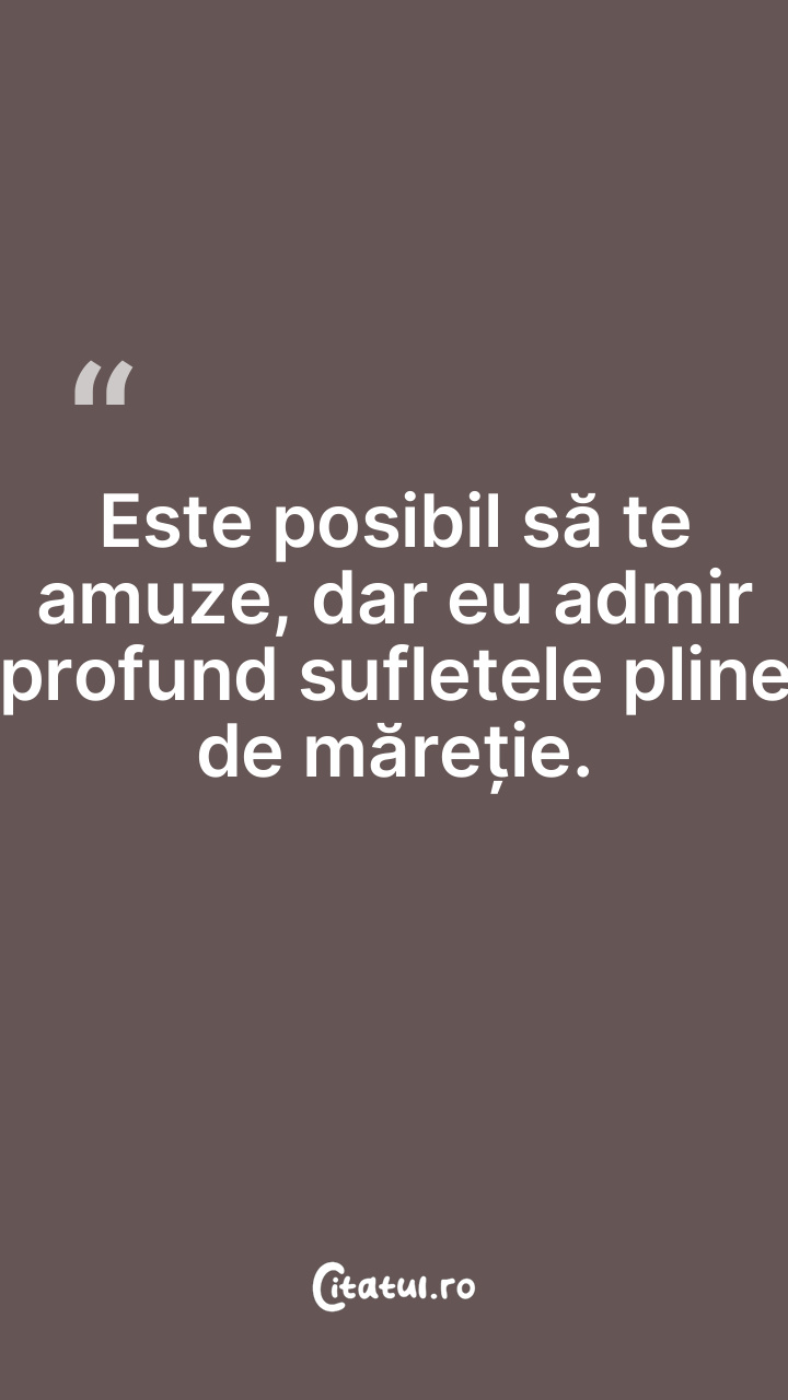 Este posibil să te amuze, dar eu admir profund sufletele pline de măreție.