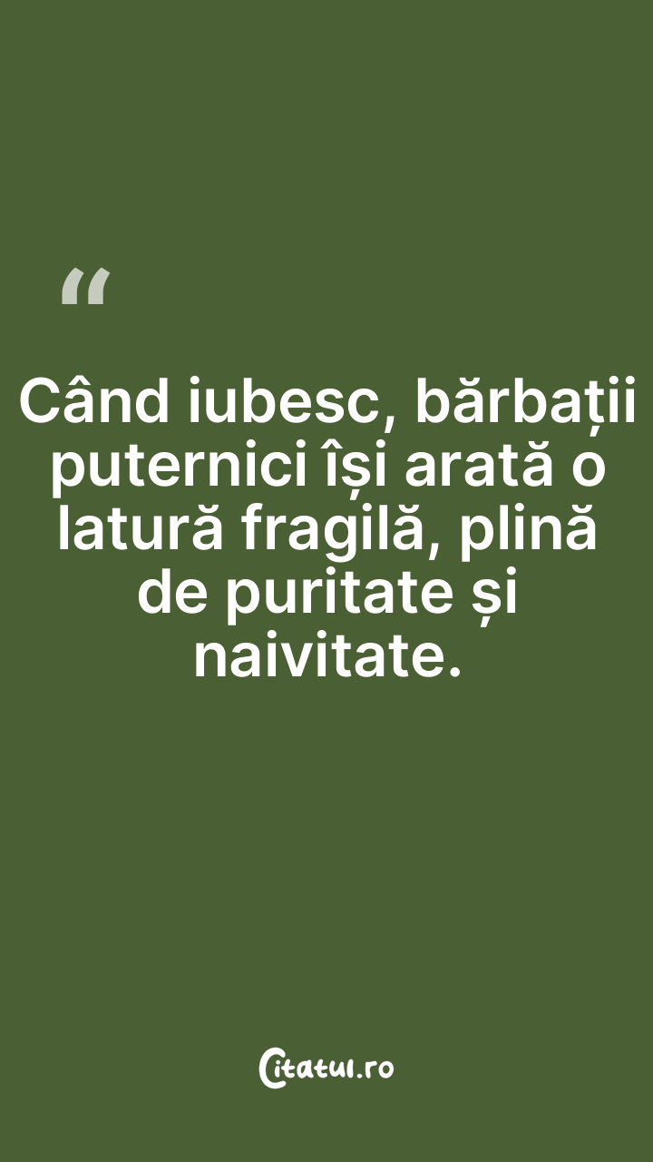 Când iubesc, bărbații puternici își arată o latură fragilă, plină de puritate și naivitate.
