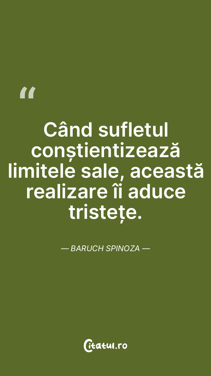 Când sufletul conștientizează limitele sale, această realizare îi aduce tristețe. Baruch Spinoza