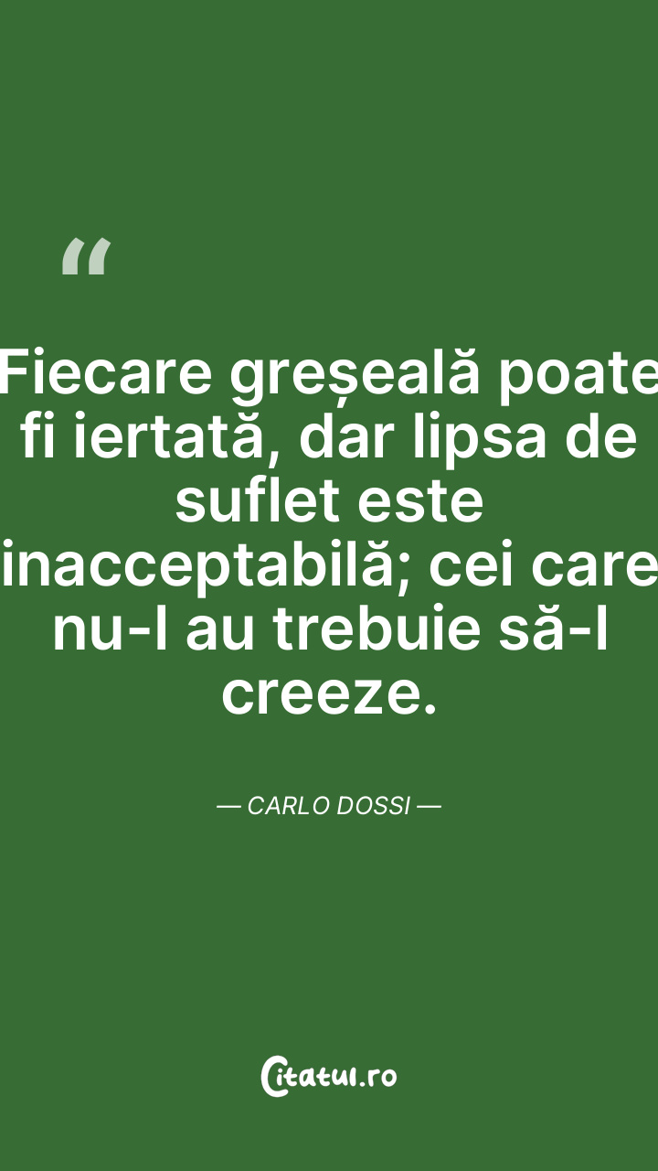 Fiecare greșeală poate fi iertată, dar lipsa de suflet este inacceptabilă; cei care nu-l au trebuie să-l creeze. Carlo Dossi