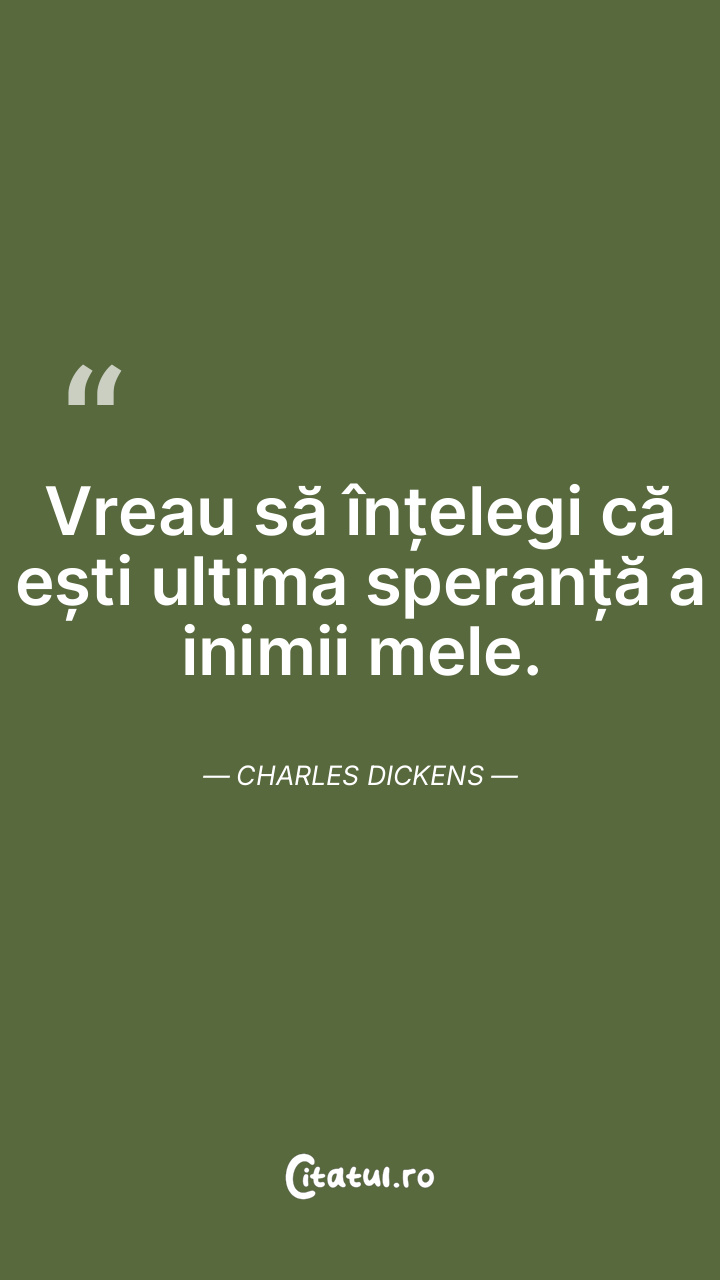 Vreau să înțelegi că ești ultima speranță a inimii mele. Charles Dickens