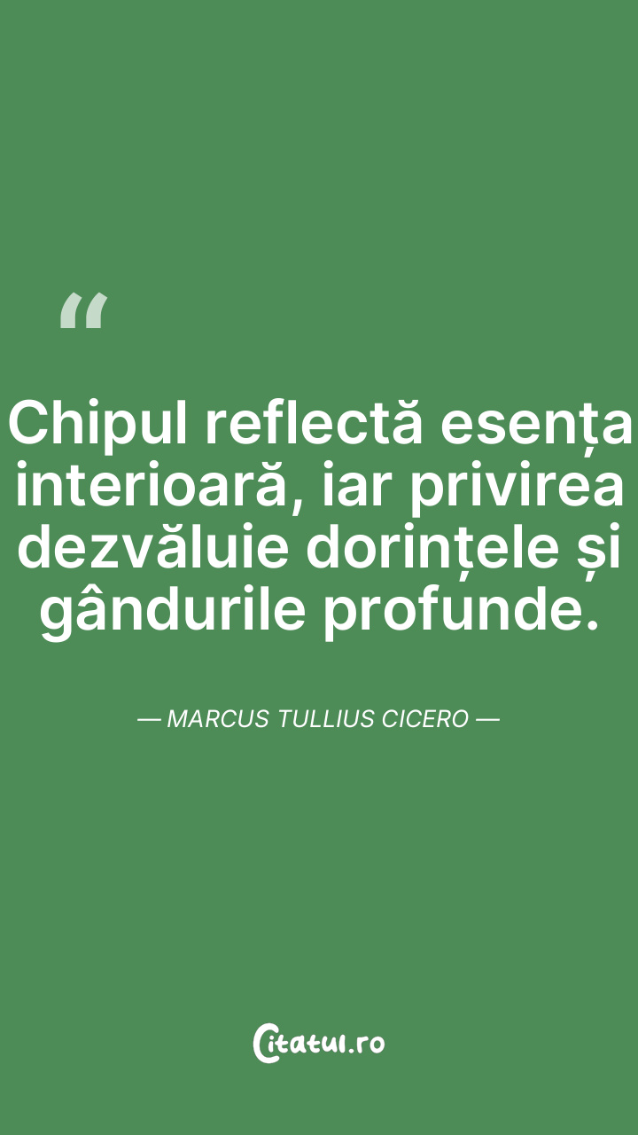 Chipul reflectă esența interioară, iar privirea dezvăluie dorințele și gândurile profunde. Marcus Tullius Cicero