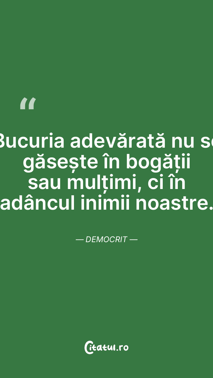 Bucuria adevărată nu se găsește în bogății sau mulțimi, ci în adâncul inimii noastre. Democrit