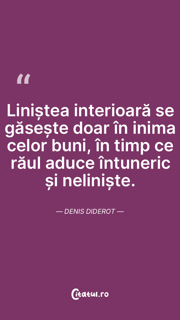 Liniștea interioară se găsește doar în inima celor buni, în timp ce răul aduce întuneric și neliniște. Denis Diderot