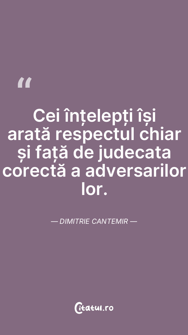 Cei înțelepți își arată respectul chiar și față de judecata corectă a adversarilor lor. Dimitrie Cantemir
