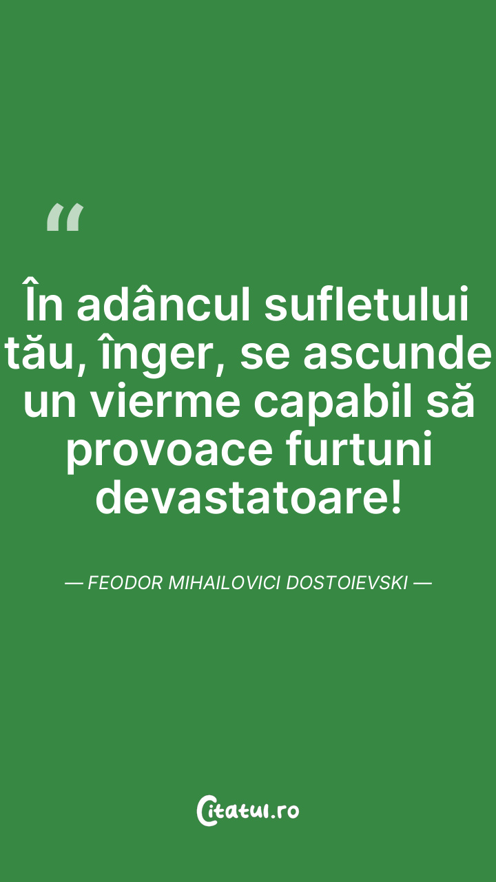 În adâncul sufletului tău, înger, se ascunde un vierme capabil să provoace furtuni devastatoare! Feodor Mihailovici Dostoievski