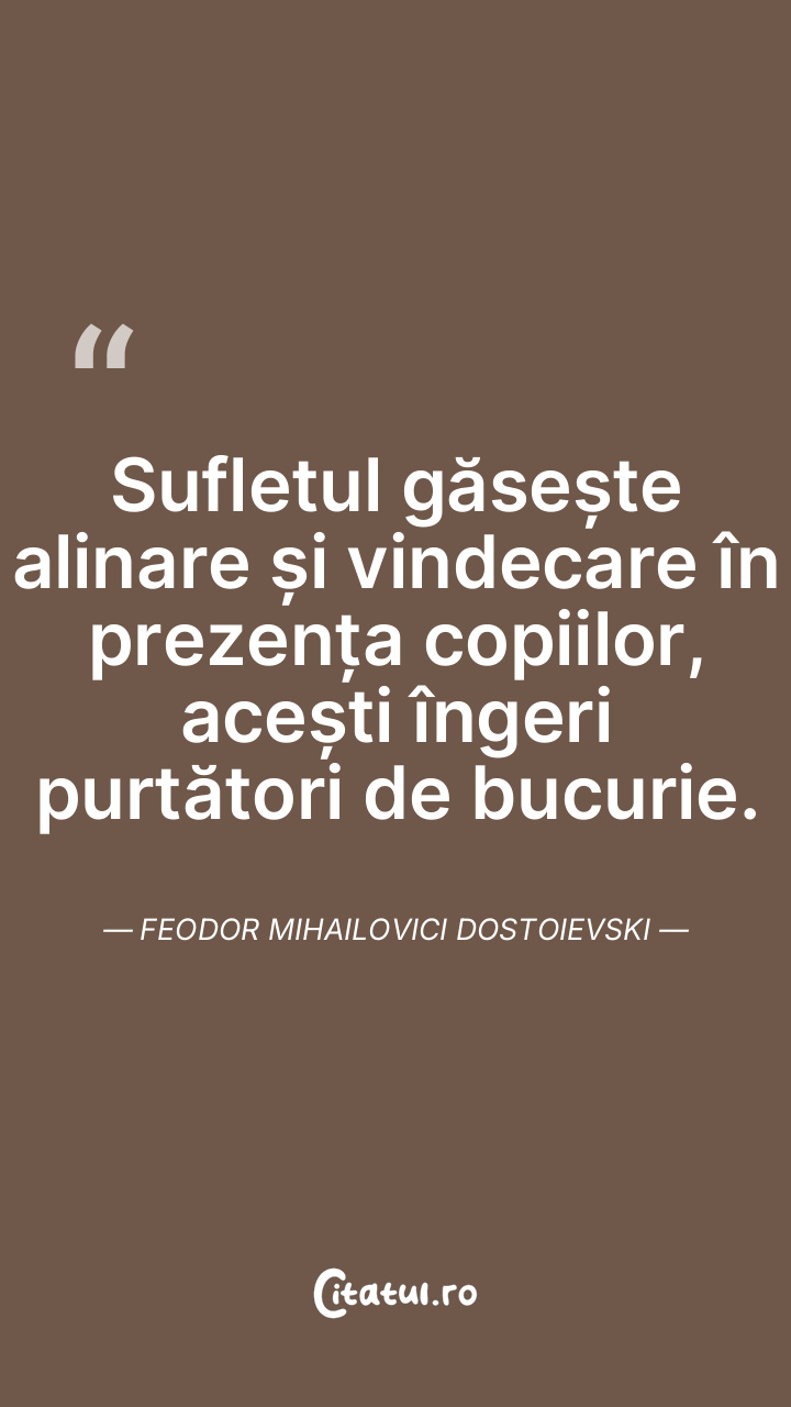 Sufletul găsește alinare și vindecare în prezența copiilor, acești îngeri purtători de bucurie. Feodor Mihailovici Dostoievski