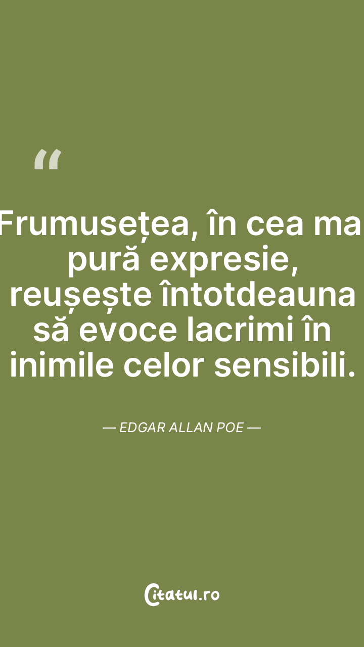 Frumusețea, în cea mai pură expresie, reușește întotdeauna să evoce lacrimi în inimile celor sensibili. Edgar Allan Poe