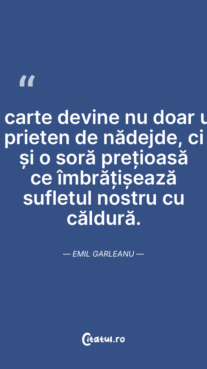 O carte devine nu doar un prieten de nădejde, ci și o soră prețioasă ce îmbrățișează sufletul nostru cu căldură. Emil Garleanu