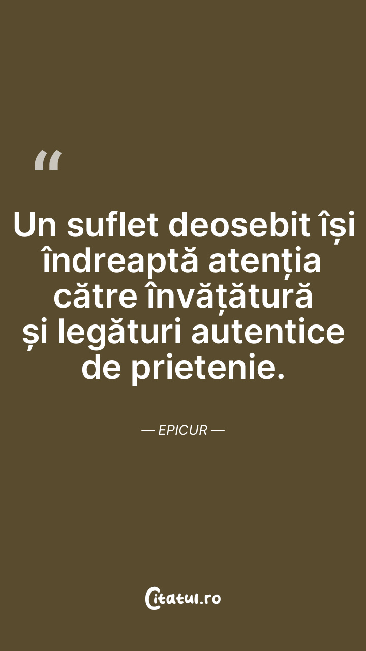 Un suflet deosebit își îndreaptă atenția către învățătură și legături autentice de prietenie. Epicur