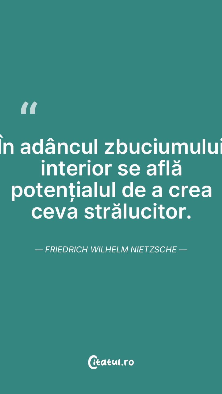 În adâncul zbuciumului interior se află potențialul de a crea ceva strălucitor. Friedrich Wilhelm Nietzsche