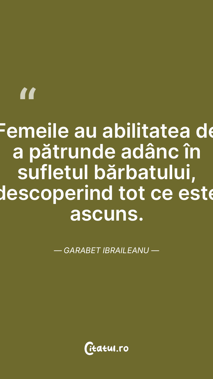 Femeile au abilitatea de a pătrunde adânc în sufletul bărbatului, descoperind tot ce este ascuns. Garabet Ibraileanu