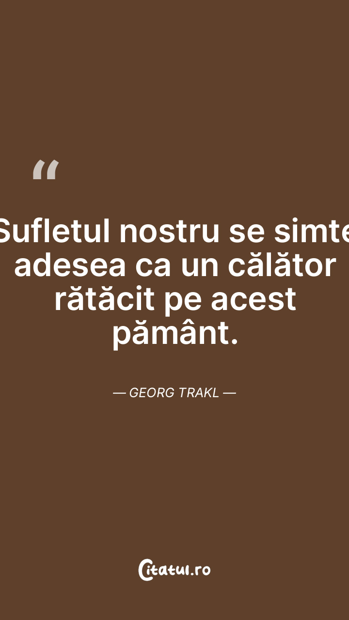 Sufletul nostru se simte adesea ca un călător rătăcit pe acest pământ. Georg Trakl