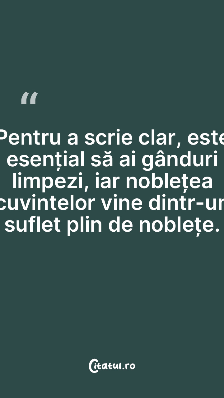 Pentru a scrie clar, este esențial să ai gânduri limpezi, iar noblețea cuvintelor vine dintr-un suflet plin de noblețe.