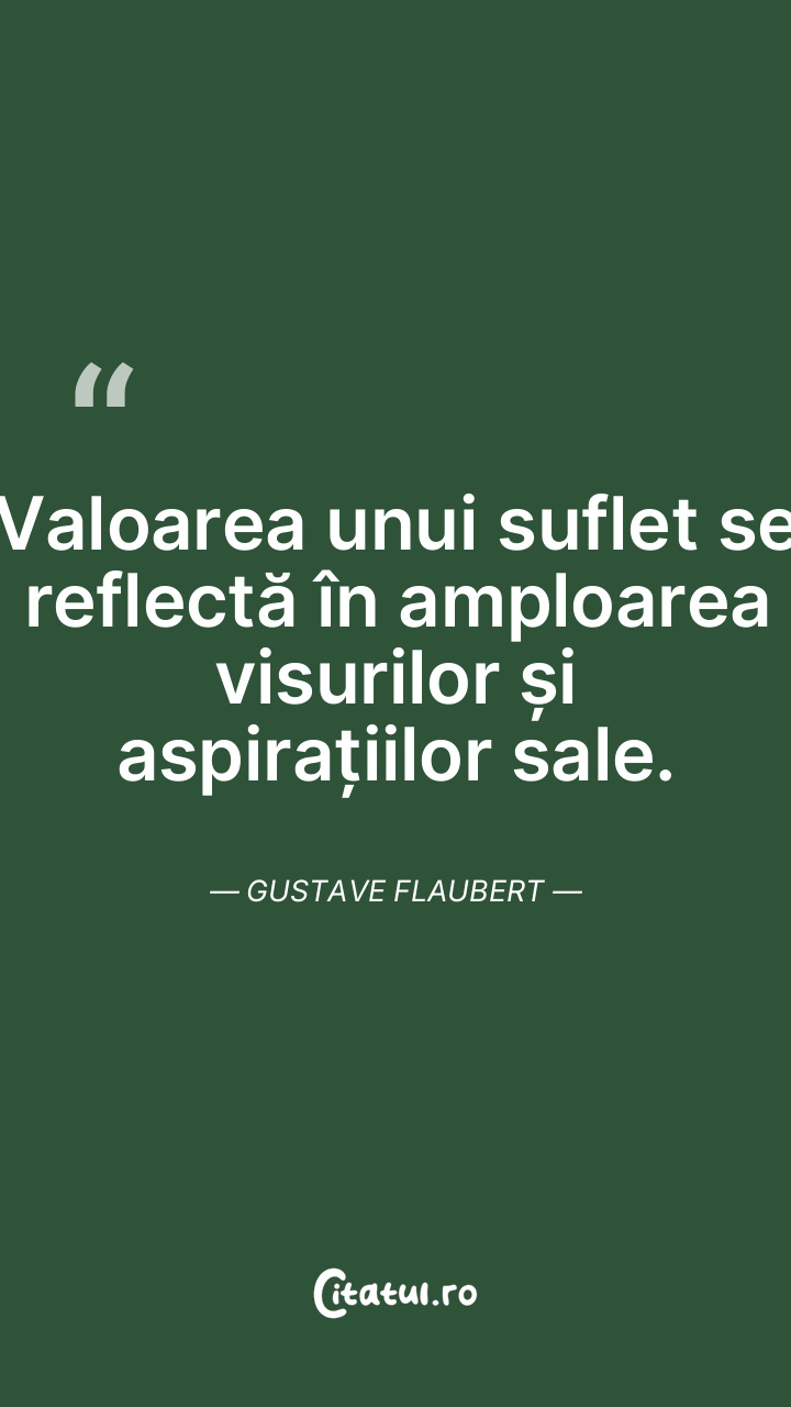 Valoarea unui suflet se reflectă în amploarea visurilor și aspirațiilor sale. Gustave Flaubert