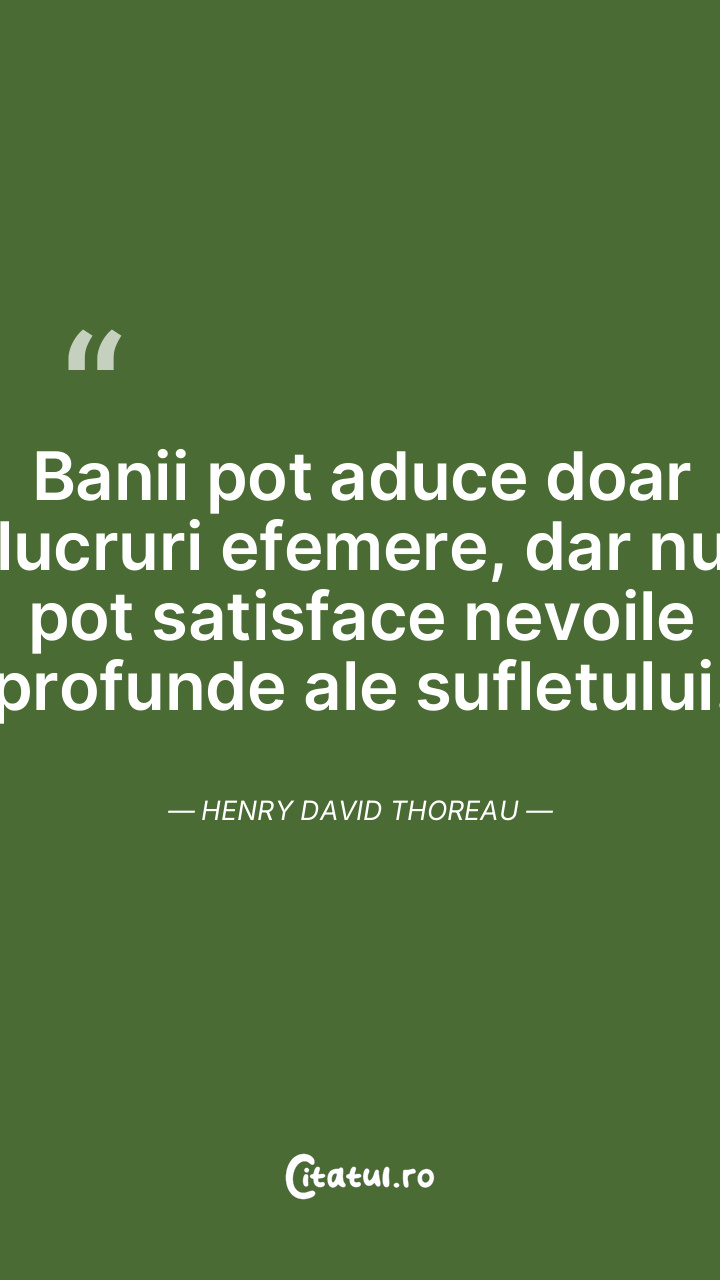 Banii pot aduce doar lucruri efemere, dar nu pot satisface nevoile profunde ale sufletului. Henry David Thoreau