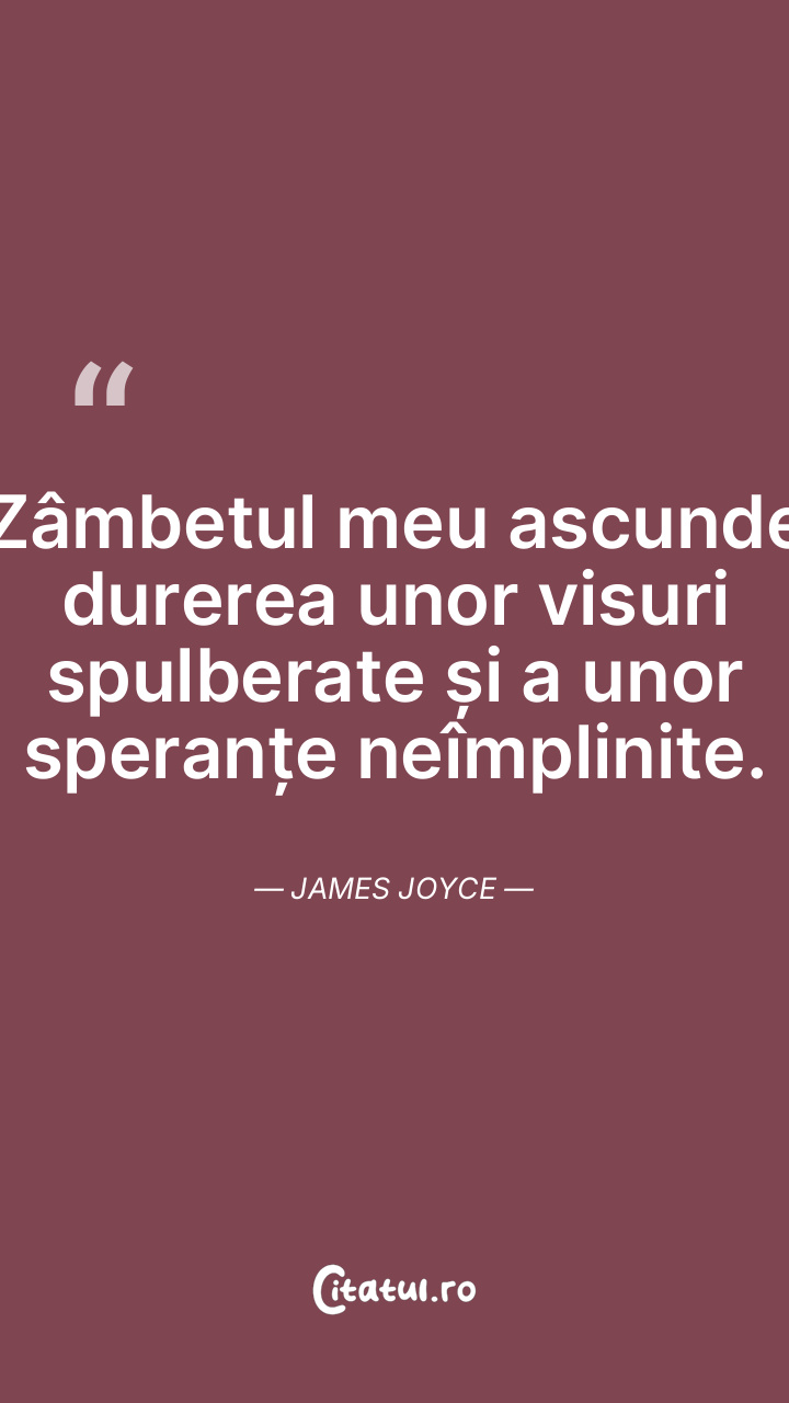 Zâmbetul meu ascunde durerea unor visuri spulberate și a unor speranțe neîmplinite. James Joyce